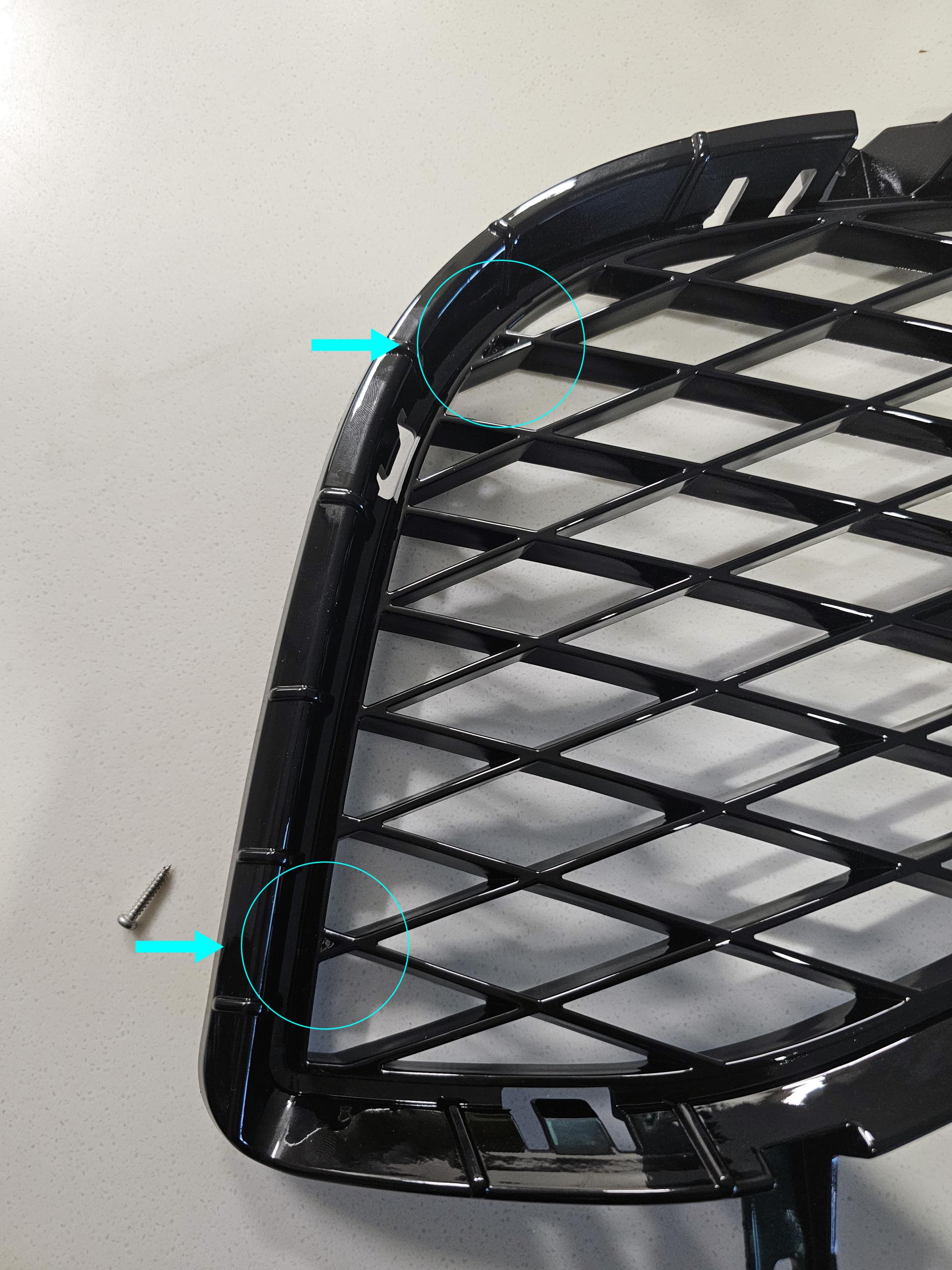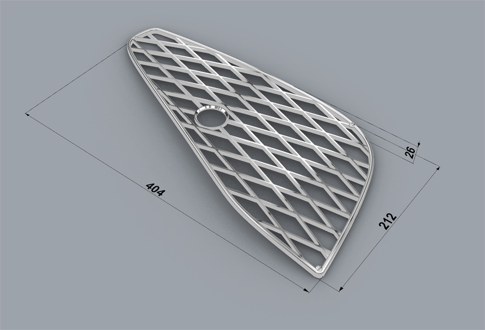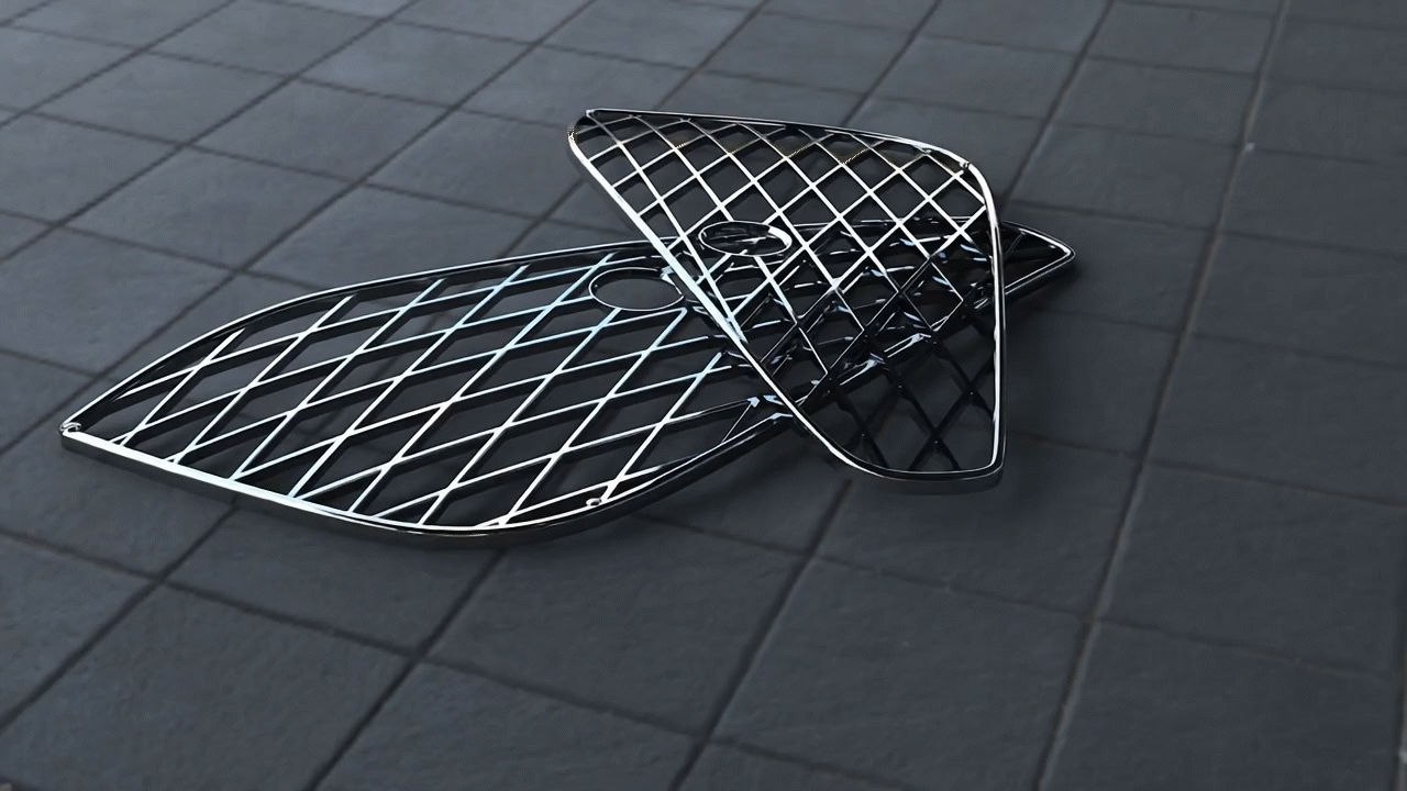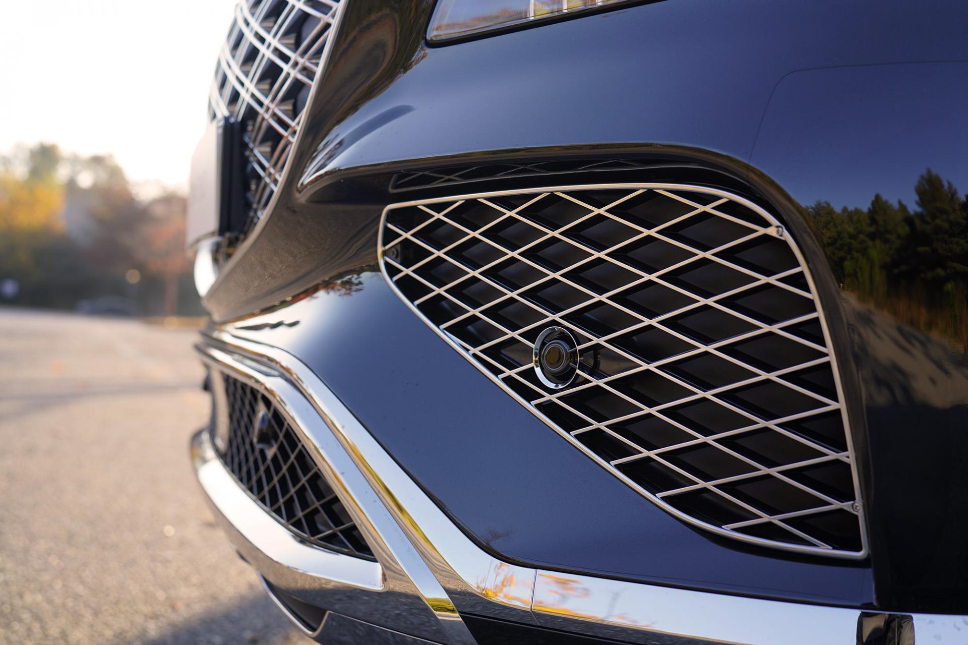 제네시스 GV80의 검정색 좌우 하단 삼각형 그릴을 크롬 재질로 업그레이드 할 수 있는 드레스업 파츠입니다. (*2024년형부터 적용)