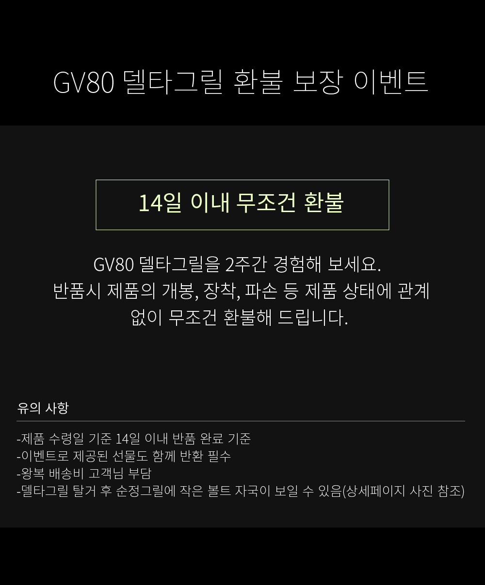 [GV80 델타그릴]은 브렌톤 공식홈페이지와 디테일파트 스마트스토어에서만 판매되는 직판 전용 상품입니다.