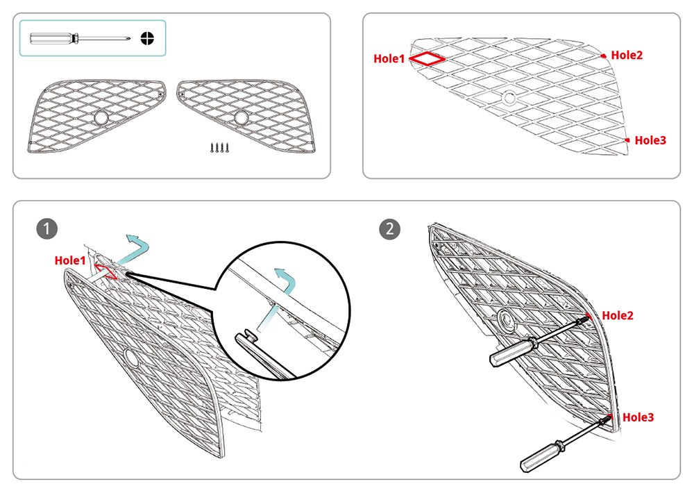 범퍼를 탈거하지 않고도 장착할 수 있어 전문가의 도움 없이도 손쉽게 작업이 가능합니다.