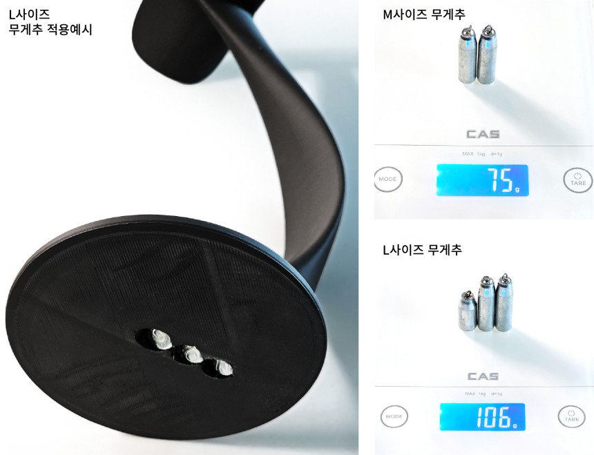 L사이즈 기준: 무게추 적용 시 기본 사양 대비 약 100g 증가
