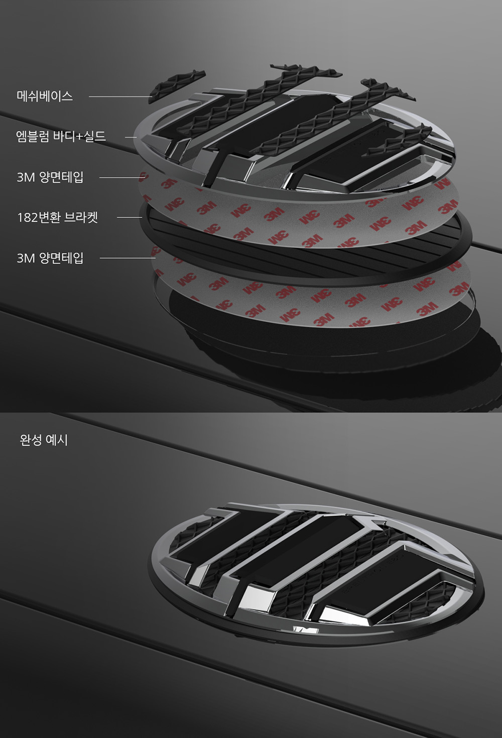 [후면 엠블럼] 아래 이미지를 참조하여 순정 엠블럼 홈을 덮듯이 장착하세요.