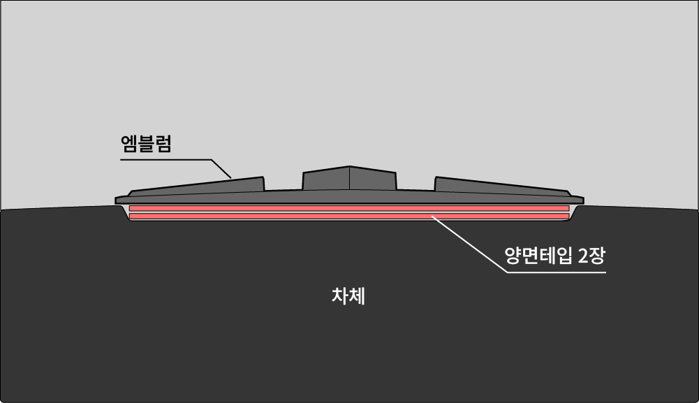 [후면 엠블럼] 아래 이미지를 참조하여 순정 엠블럼 홈을 덮듯이 장착하세요.